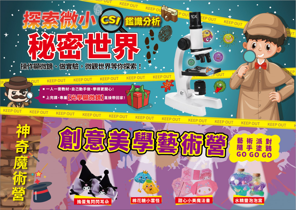 | 一、 | 旨揭寒期活動分為微觀世界探索營、創意美學藝術營、神奇魔術營三項,歡迎貴校學生踴躍報名參加。 |
