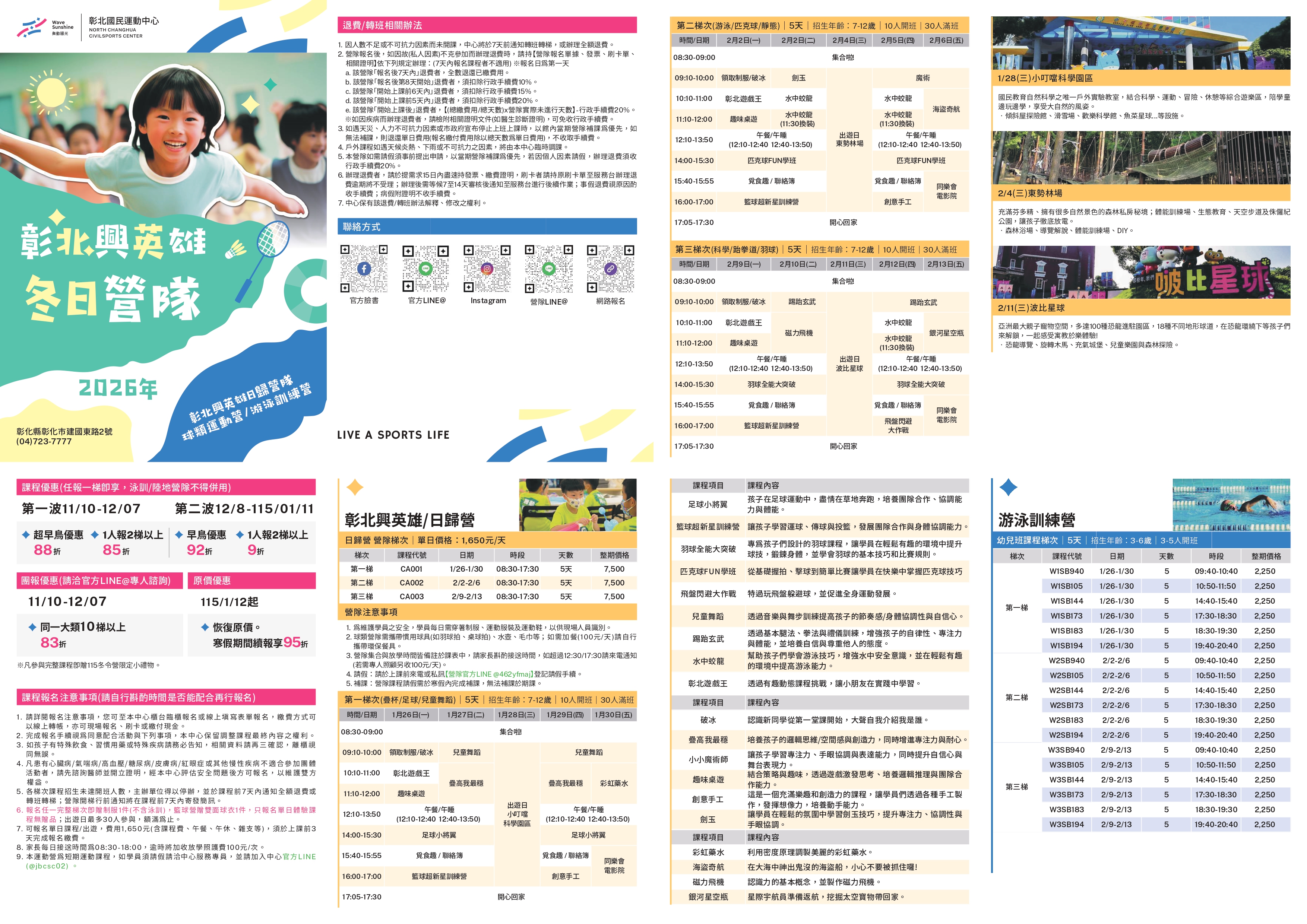 115年冬令營運動休閒課程簡章1份,歡迎大家踴躍參加。