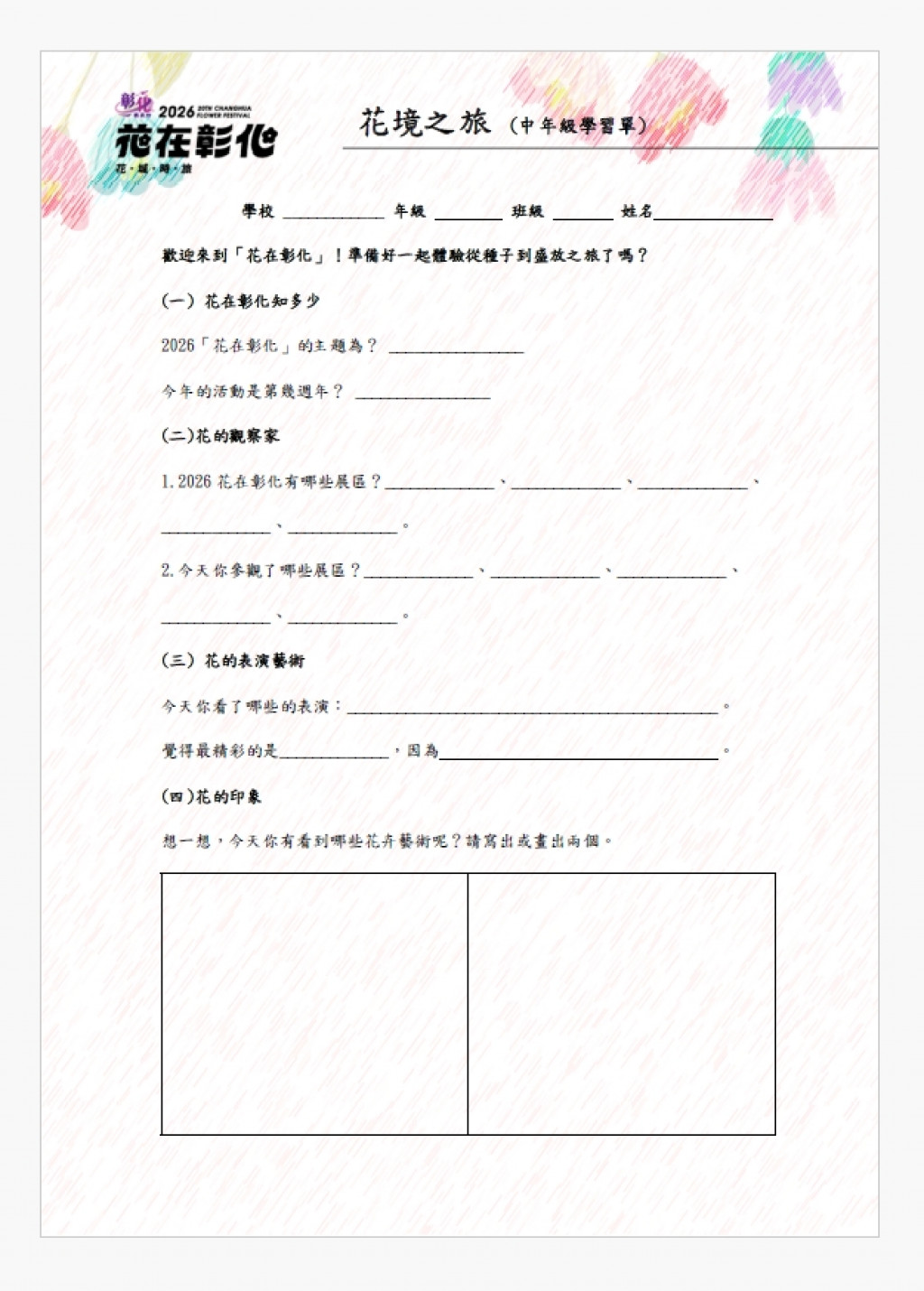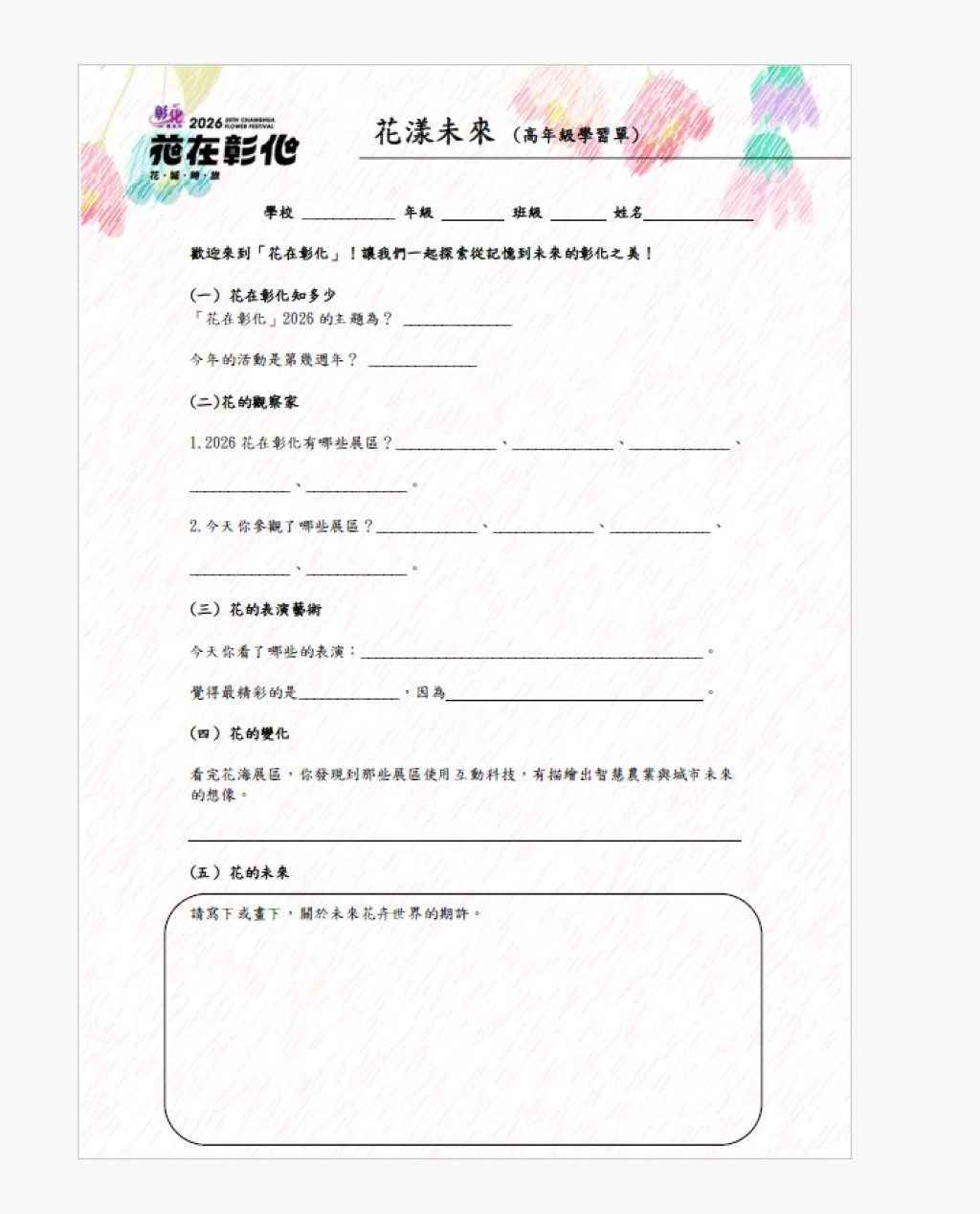 (二)本次活動以「流轉花境」為核心主展館,展館內規劃「花啟時分」、「花映時光」、「花轉之輪」、「織花憶站」及「花漾未來式」五大階段展區,呈現彰化從傳統花鄉轉變為現代永續城市的歷程。