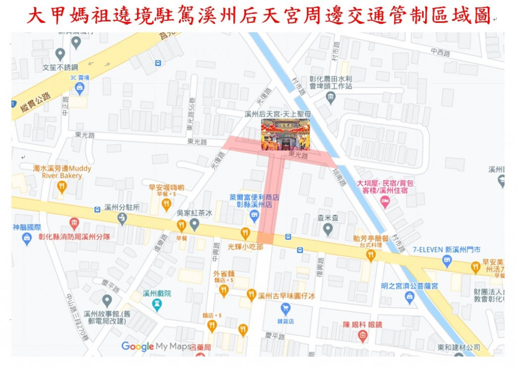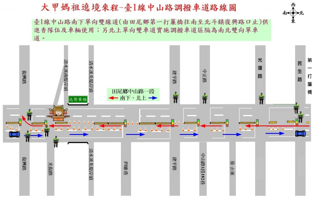 彰化縣警察局北斗分局為維護115年4月19日「大甲鎮瀾宮天上聖母遶境進香活動」行經期間交通秩序,將視交通狀況彈性管制車輛,,請大家多留意。