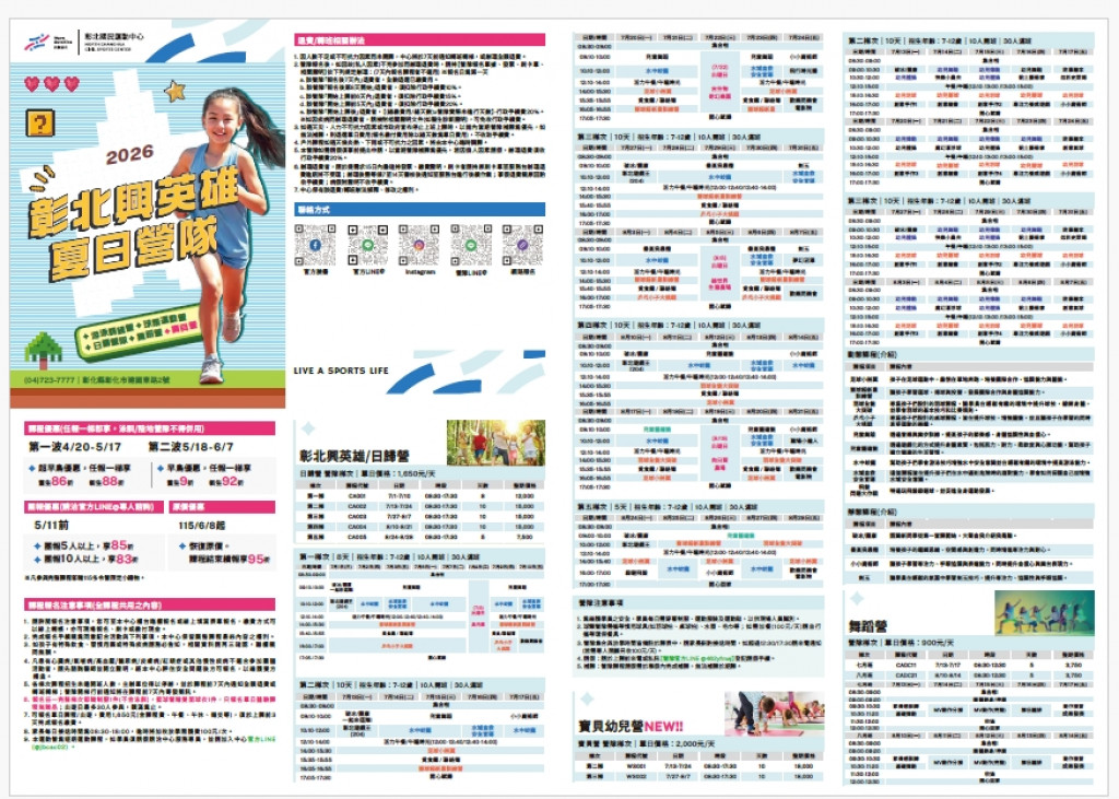 舞動陽光股份有限公司受託管理「彰化縣彰北國民運動中心」115年夏令營運動休閒課程簡章1份